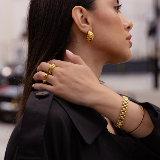 Our jewellery is crafted with premium 18K plating that resist tarnishing, ensuring a long-lasting shine and impeccable appearance.
